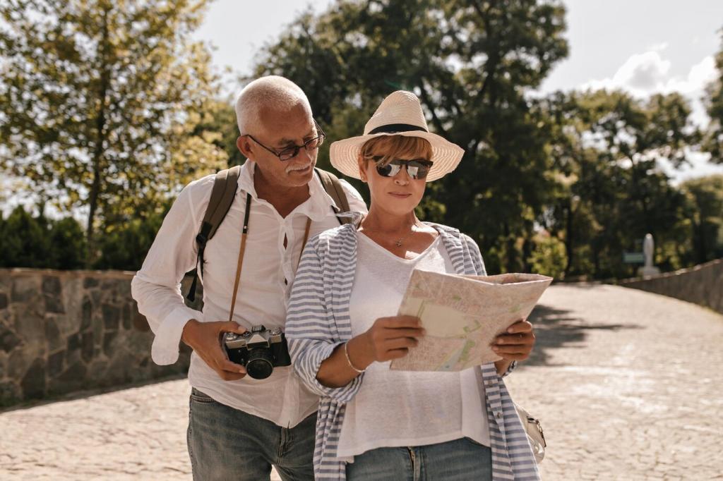 Achten Sie auf kurze Etappen, Sitzgelegenheiten und barrierefreie Zugänge in Archiven und Kirchen. Reservieren Sie nach Möglichkeit Führungen und prüfen Sie lokale Fahrdienste. Welche Hilfen haben Ihrer Familie besonders genützt? Hinterlassen Sie Ihre Hinweise für andere Mitreisende.